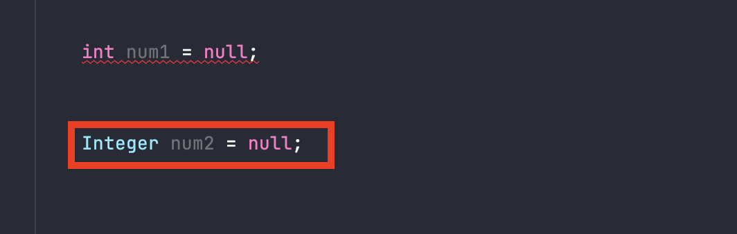 💡 기본 자료형은 null로 초기화가 불가능하며 래퍼 클래스의 경우는 null로 초기화가 가능합니다.