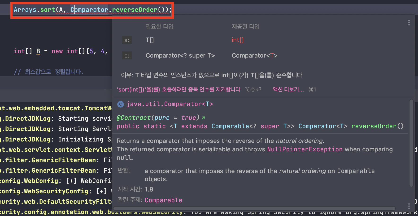 1.2. 숫자 배열의 변환 에러 : Arrays.sort(array, Comparator.reverseOrder())를 사용하는 경우 에러 발생하는 경우