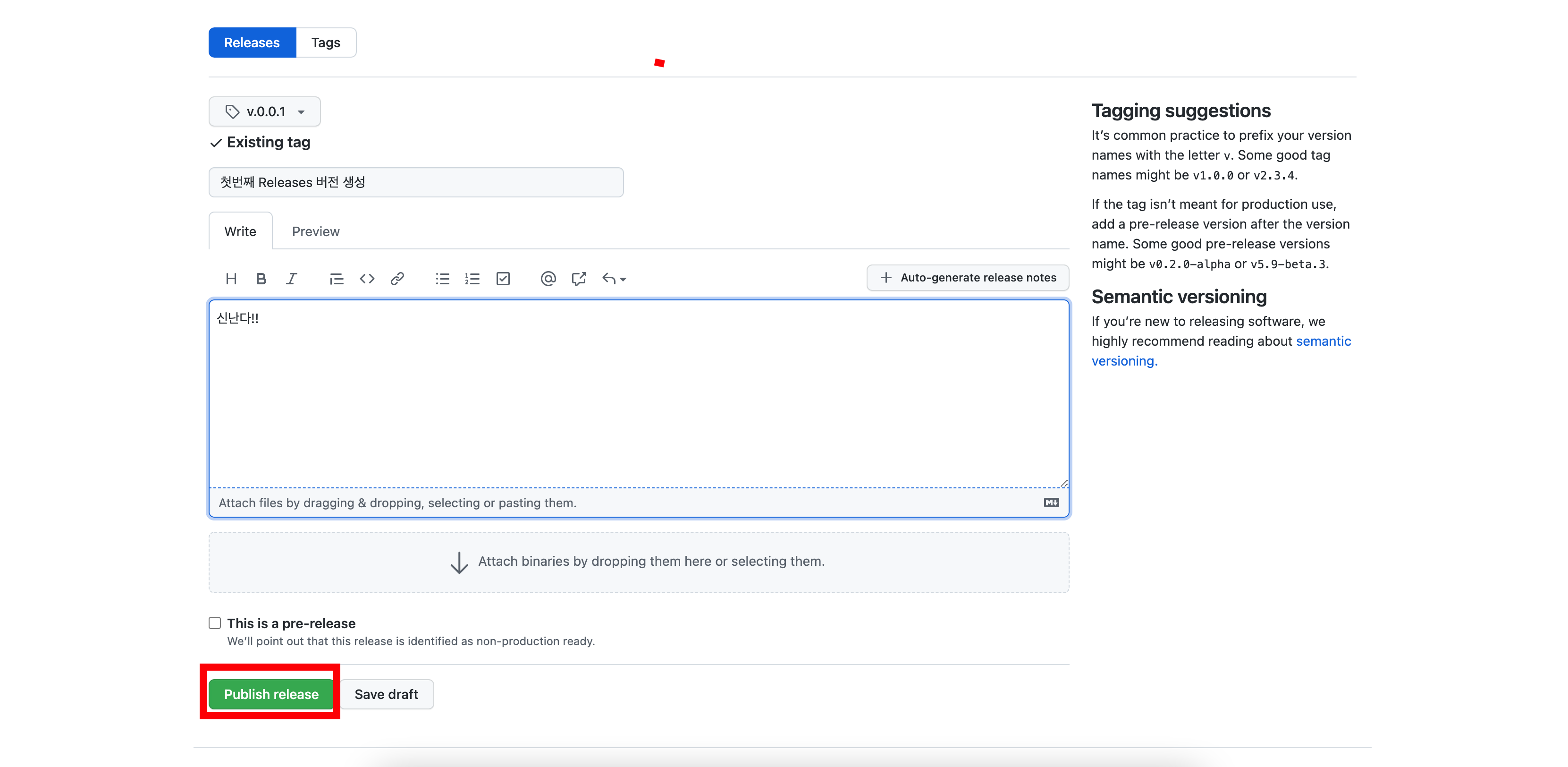 2. Releases 버전 생성하기