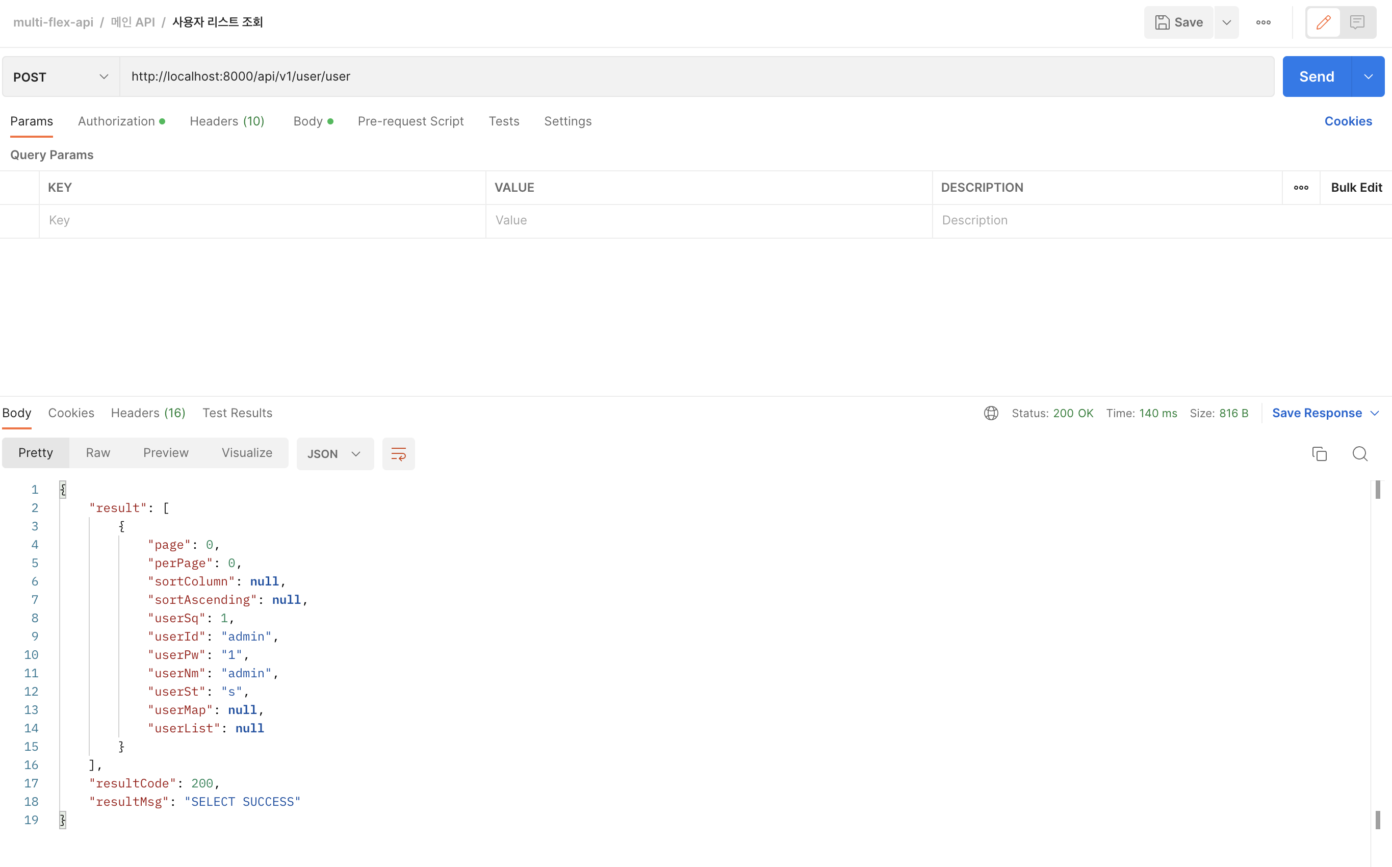 1. Controller로 호출이 되는 사용자 리스트를 조회하는 API 호출을 수행하였습니다.