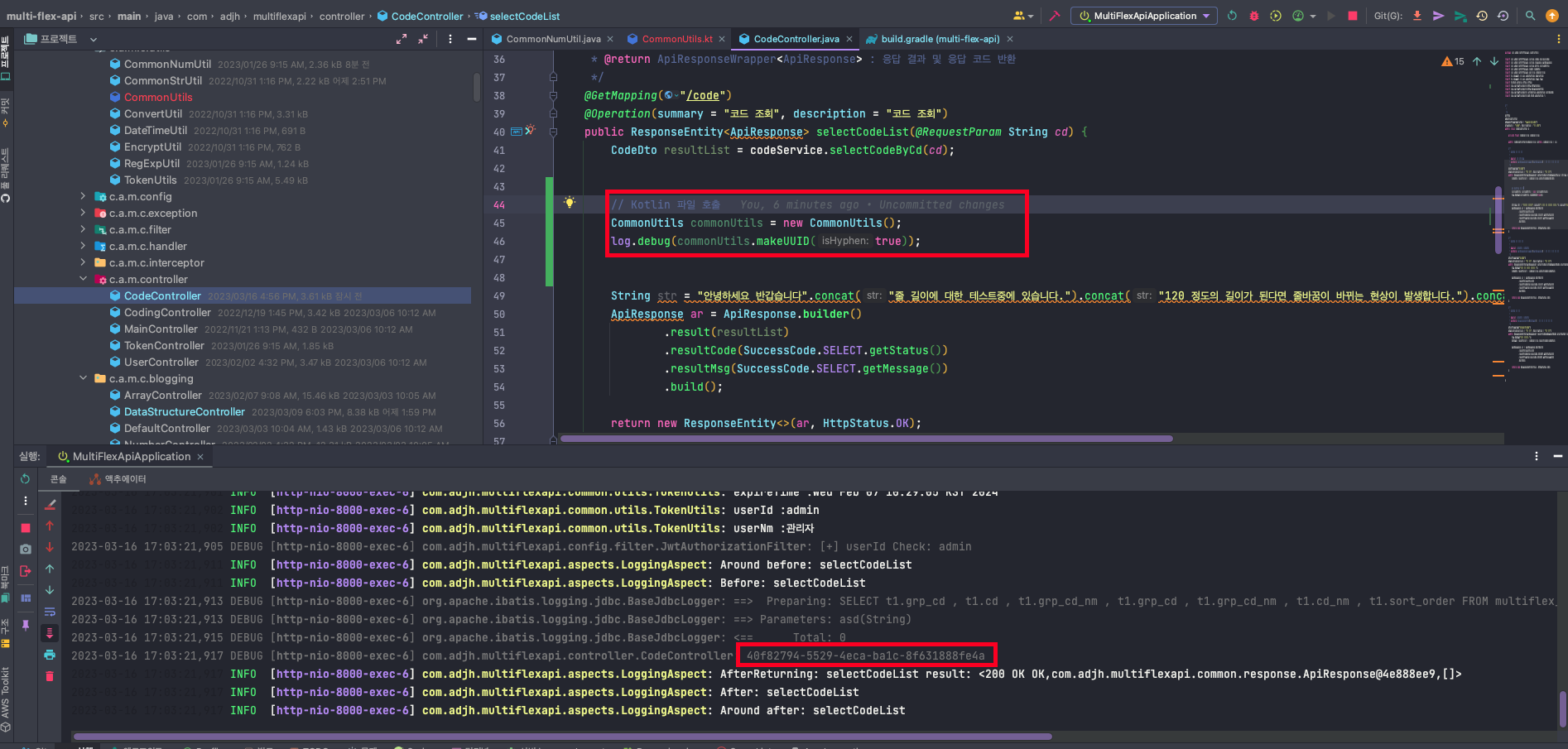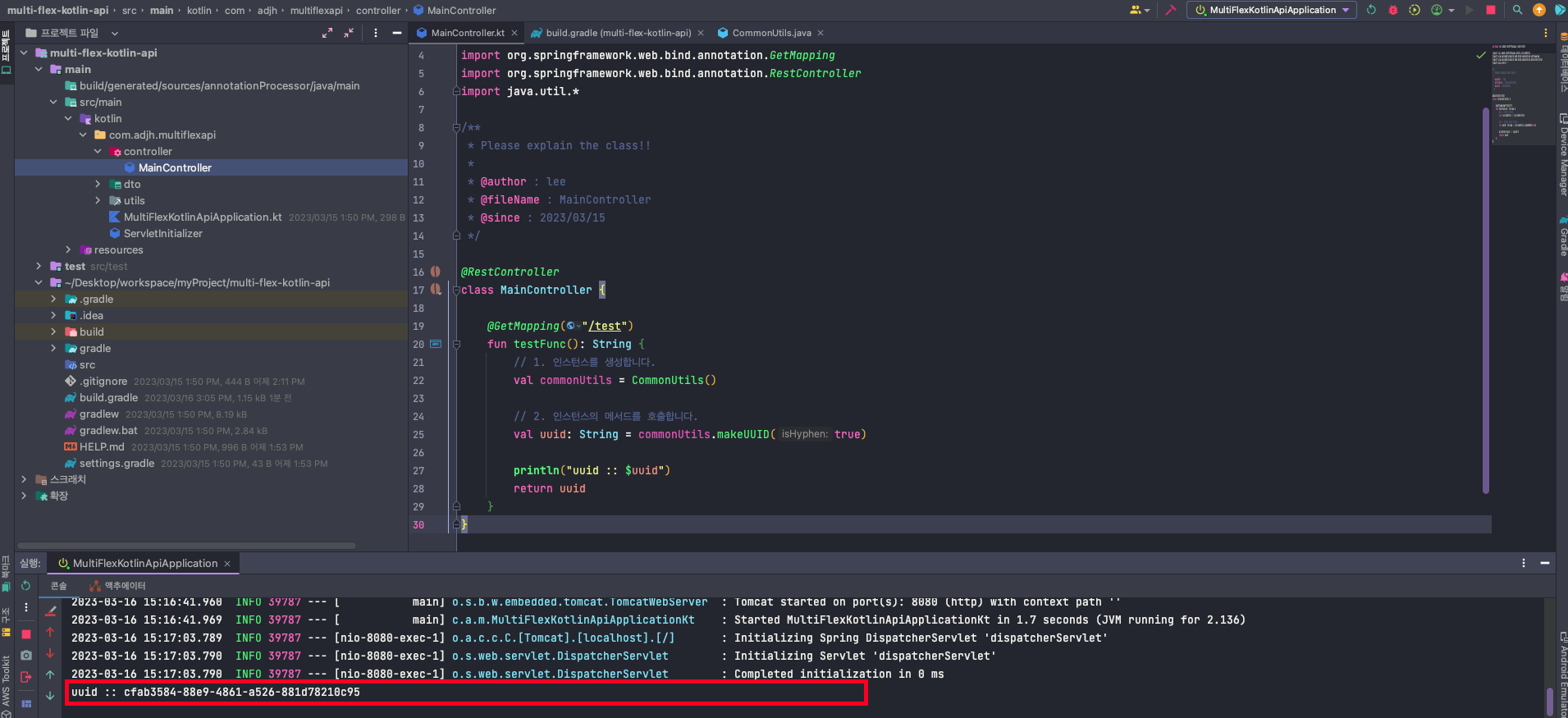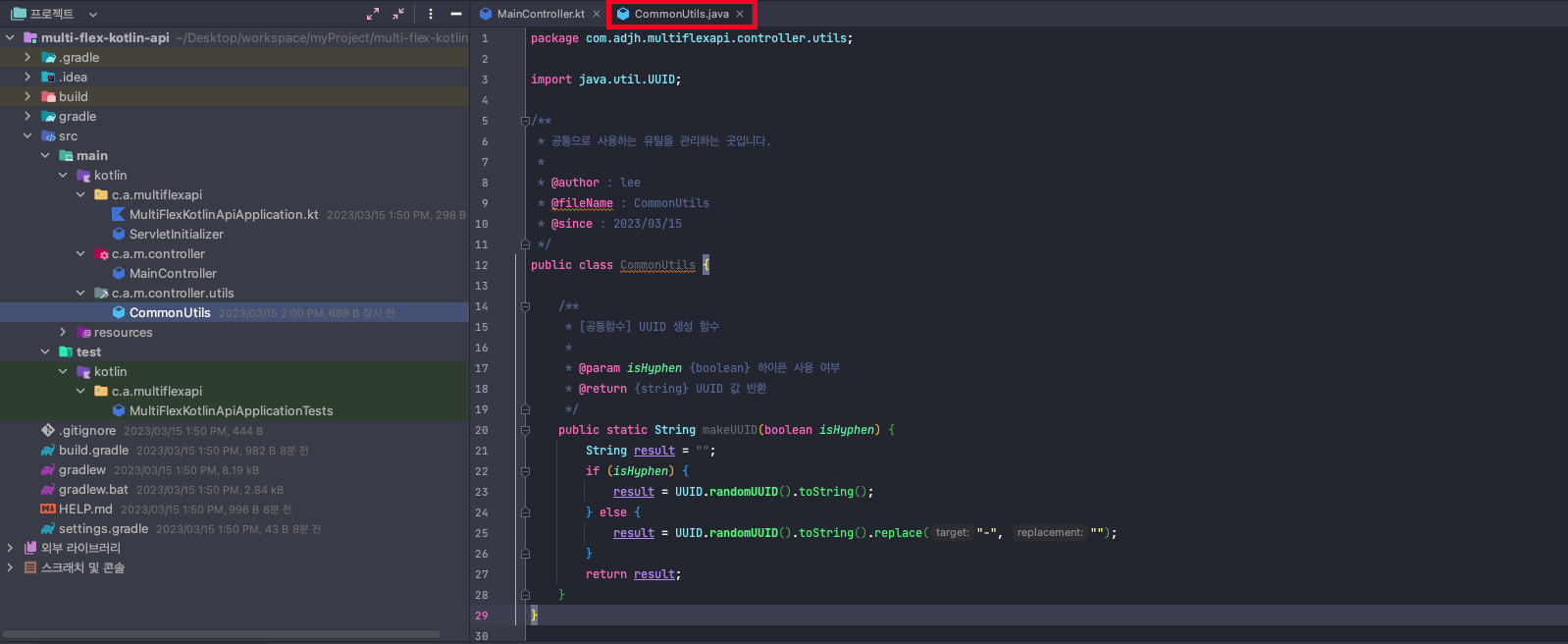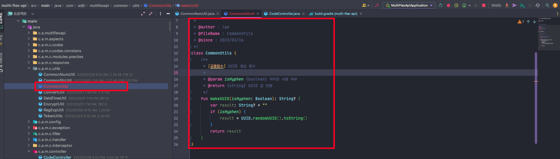 💡 Kolitn 프로젝트 내에서 Java 파일로 CommonUtils.kt를 생성하였습니다.