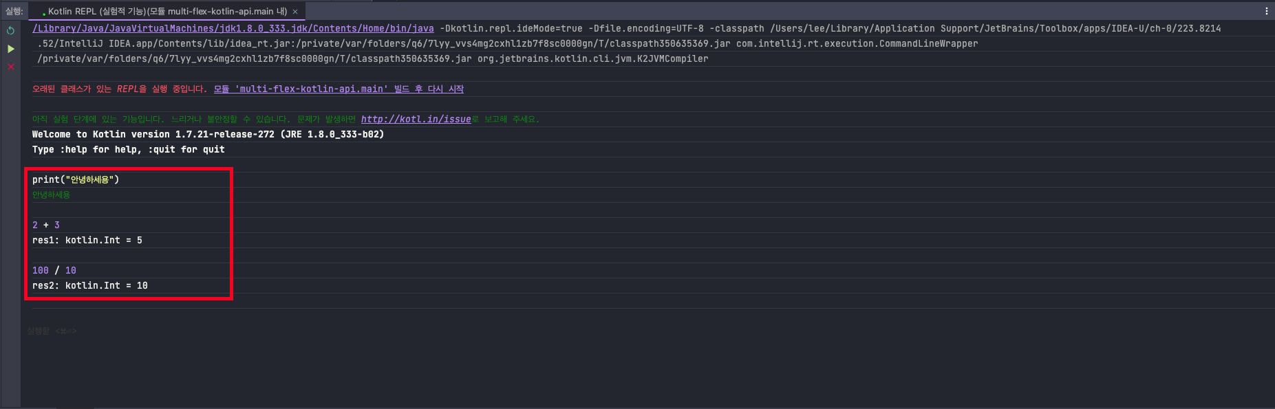 💡 Kotlin은 JVM(Java Virtual Machine)에서 실행되는 언어이지만 JavaScript로도 컴파일할 수 있습니다. 따라서 Node.js 환경에서도 kotlin 코드를 컴파일하여 실행할 수 있습니다.