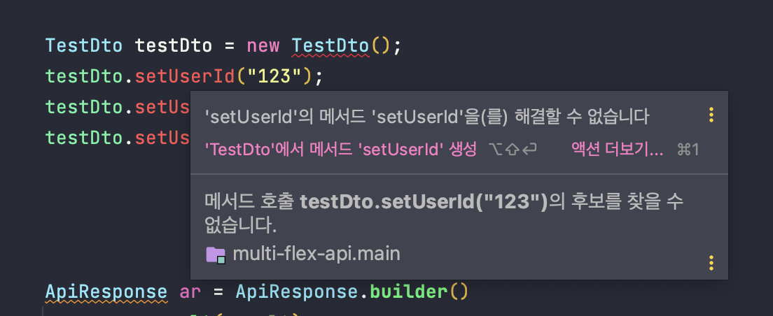 💡 이에 대해 해결 방안으로 아래의 @Builder Annotation을 사용하여 구성하여 무분별한 객체 생성에 대해서 한번 더 체크할 수 있습니다.