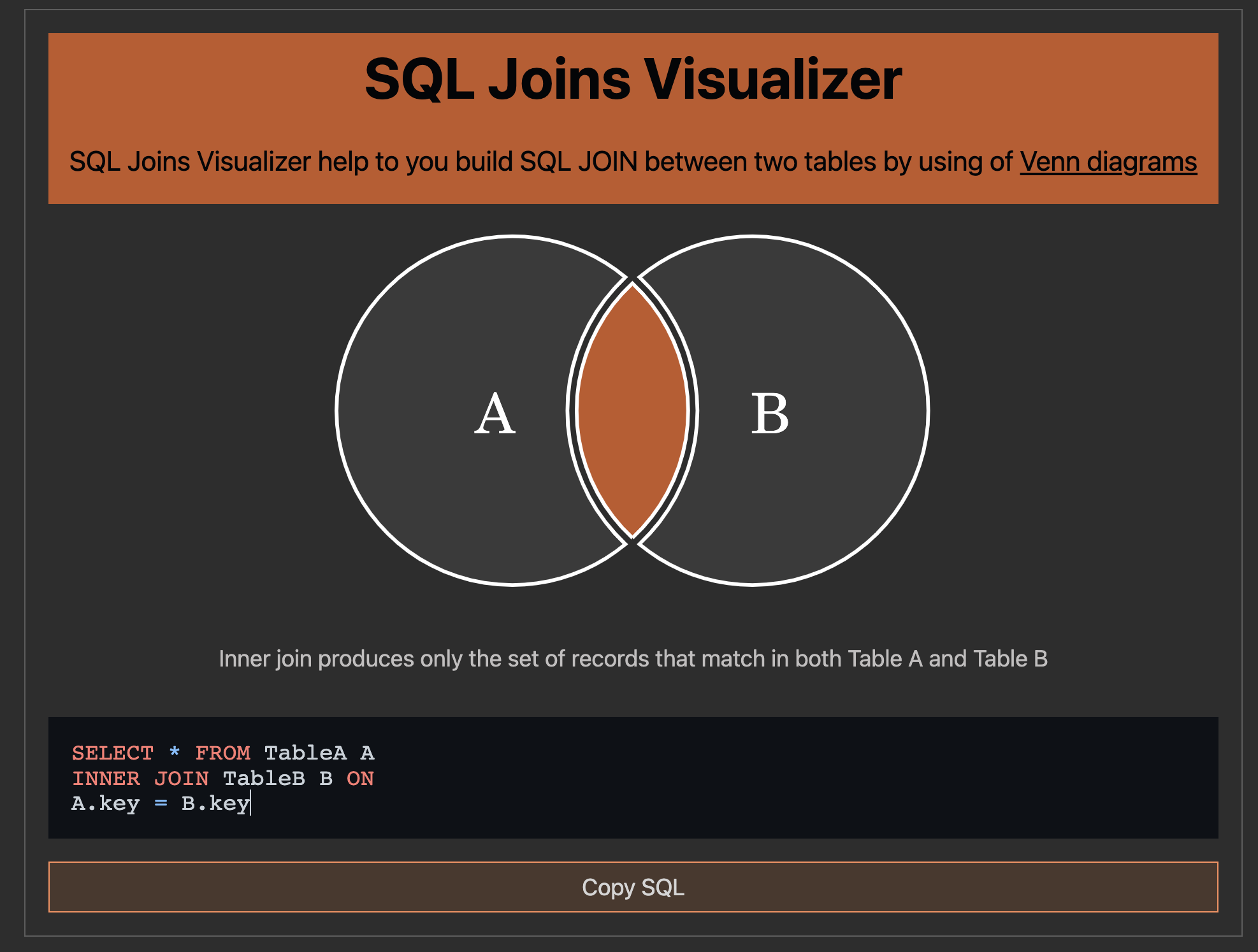 - 두 테이블에서 ‘공통된 값’을 가지고 있는 행들만을 반환합니다.