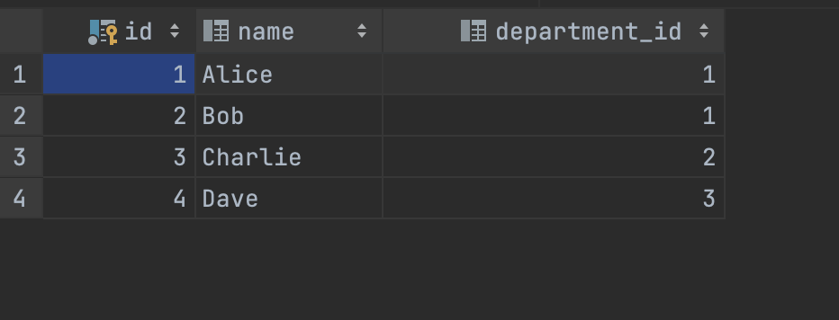 INSERT INTO employees (id, name, department_id)