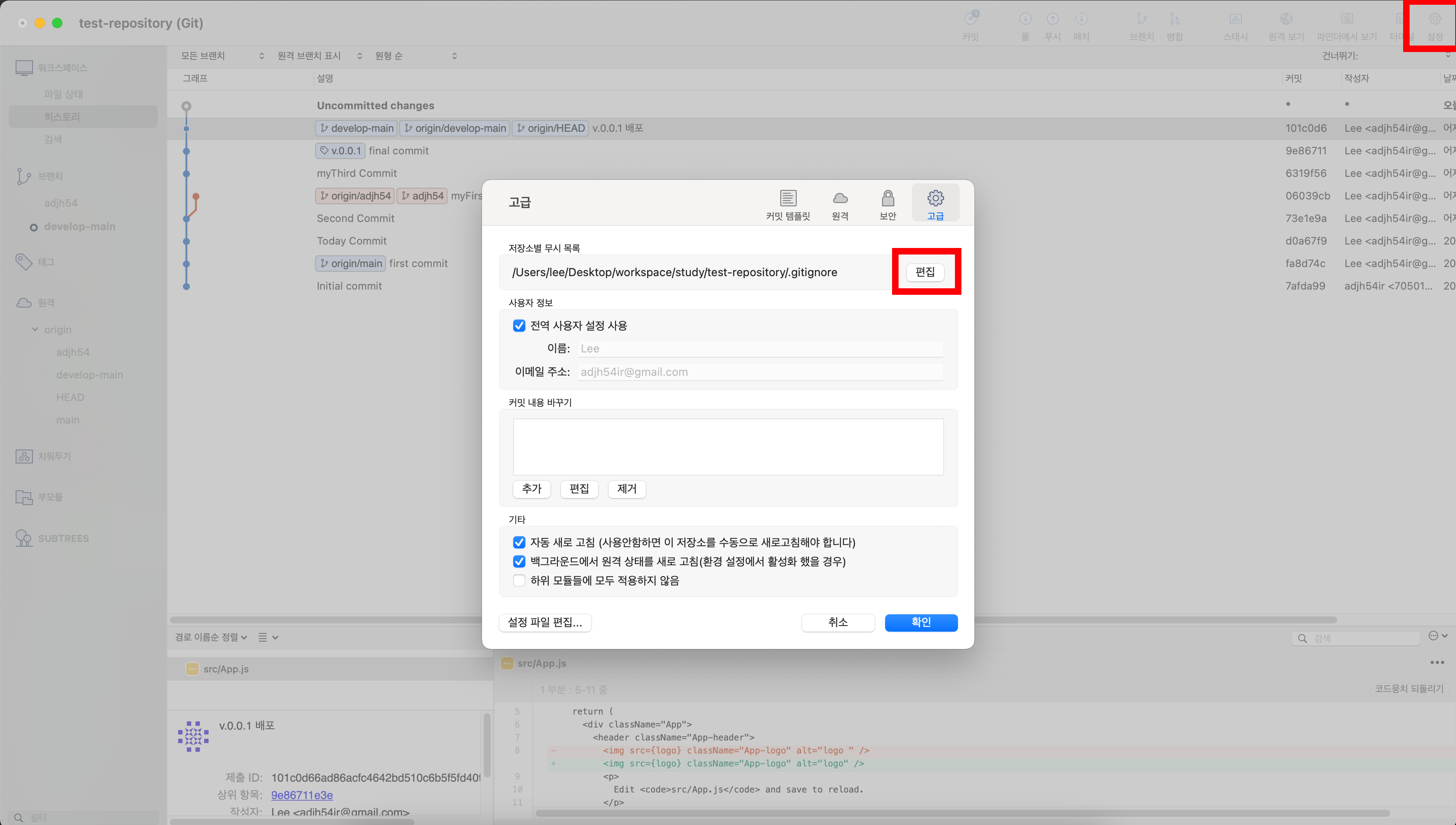 1. [Sourcetree] Sourcetree 를 통하여 .gitignore 파일을 생성하거나 편집 하는 방법