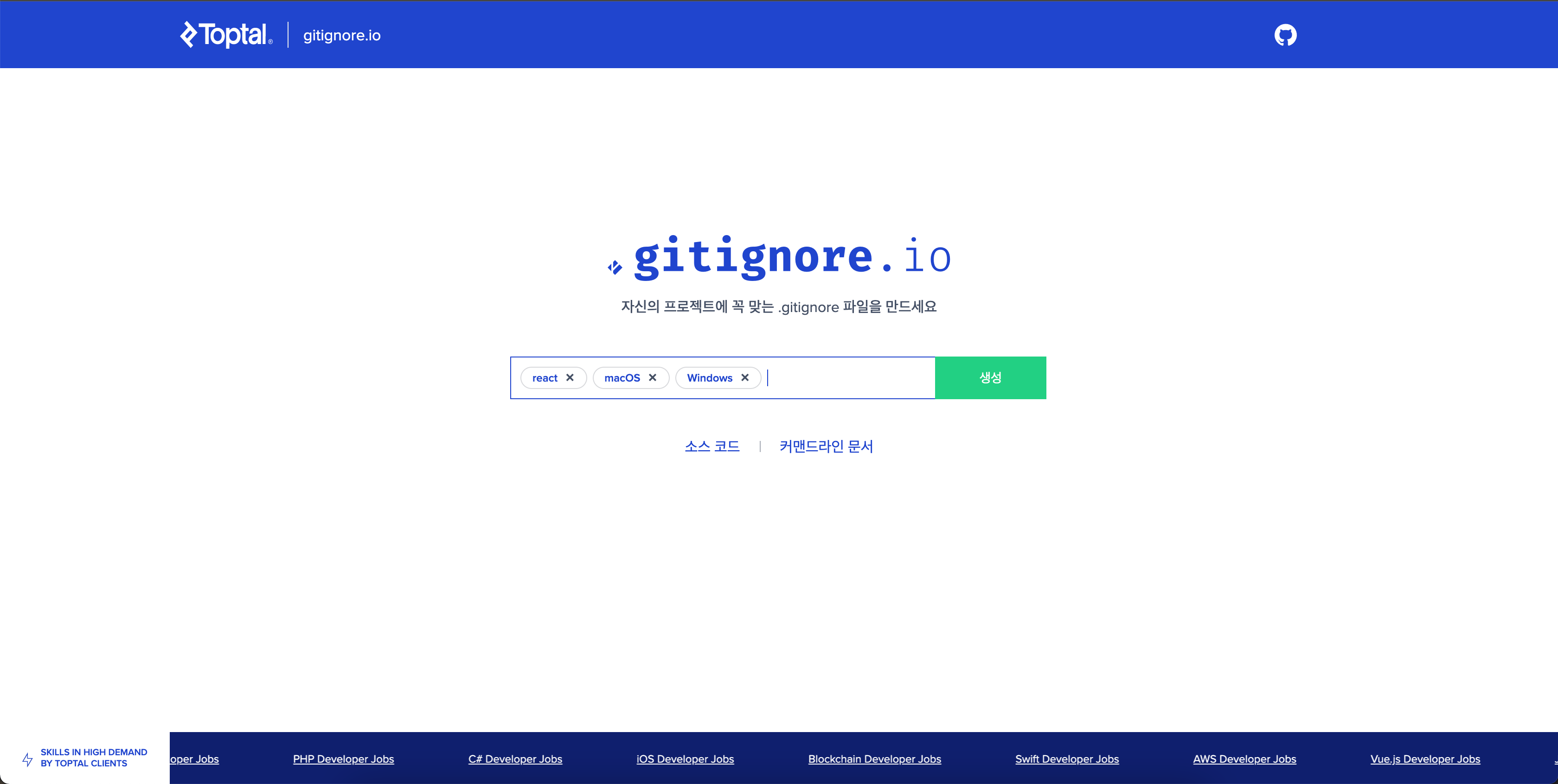 프로젝트에서 사용 중인 OS나 언어에 대한 .gitignore 템플릿을 제공합니다