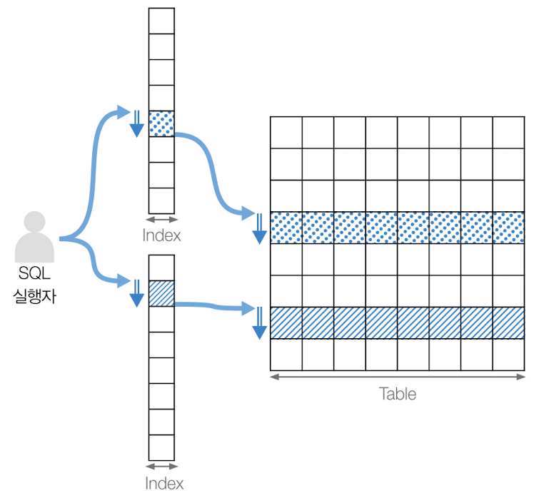 - 데이터베이스 테이블의 특정 컬럼에 대한 검색 속도를 높이기 위해 사용되는 데이터 구조입니다.