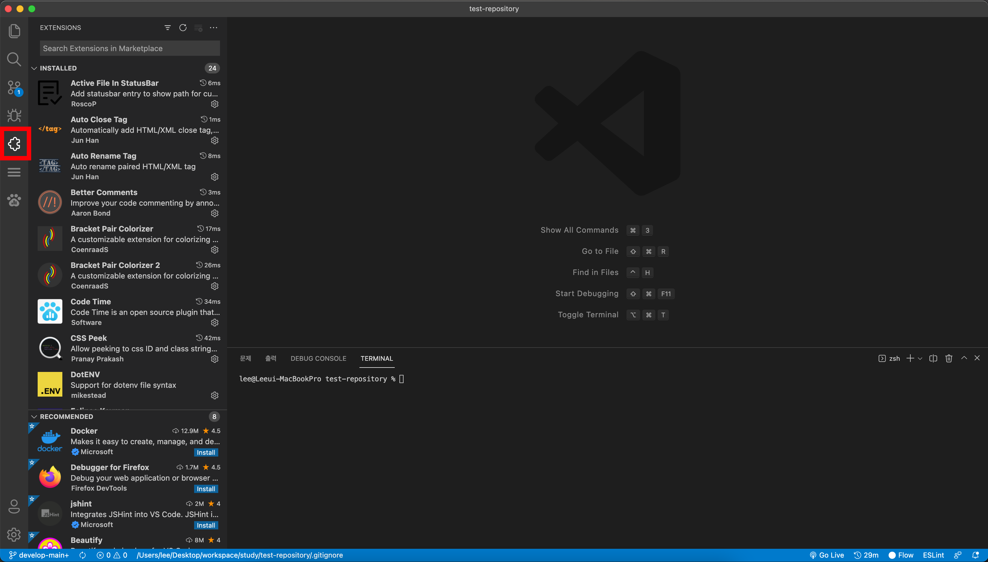 1.1. [VSCode] VSCode에서 ‘Extensions’에 해당하는 탭을 선택합니다