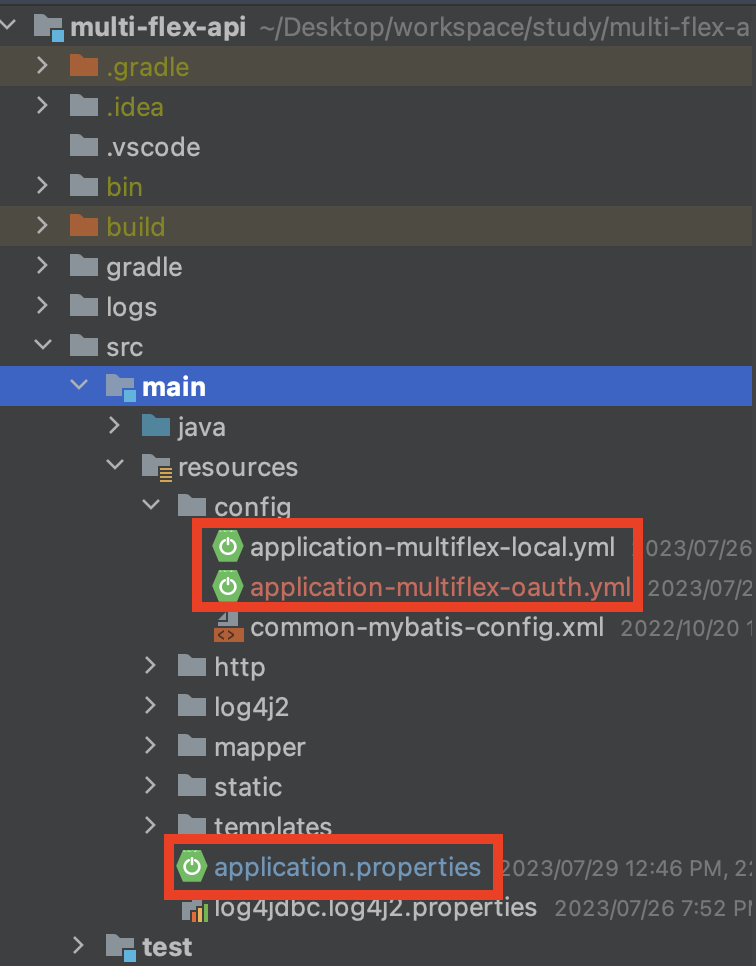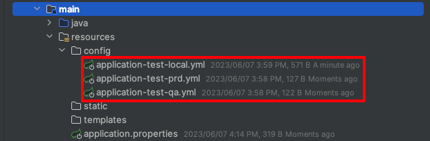 💡 resources/config 디렉토리를 생성하고 로컬, QA, PRD 형태로 파일별로 yaml 파일을 구성하였습니다.