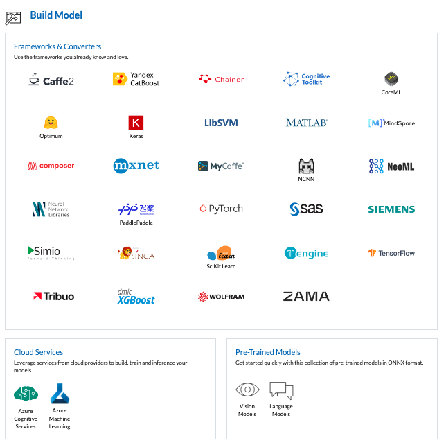 The ONNX community provides tools to assist with creating and deploying your next deep learning model. Use the information below to select the tool that is right for your project.