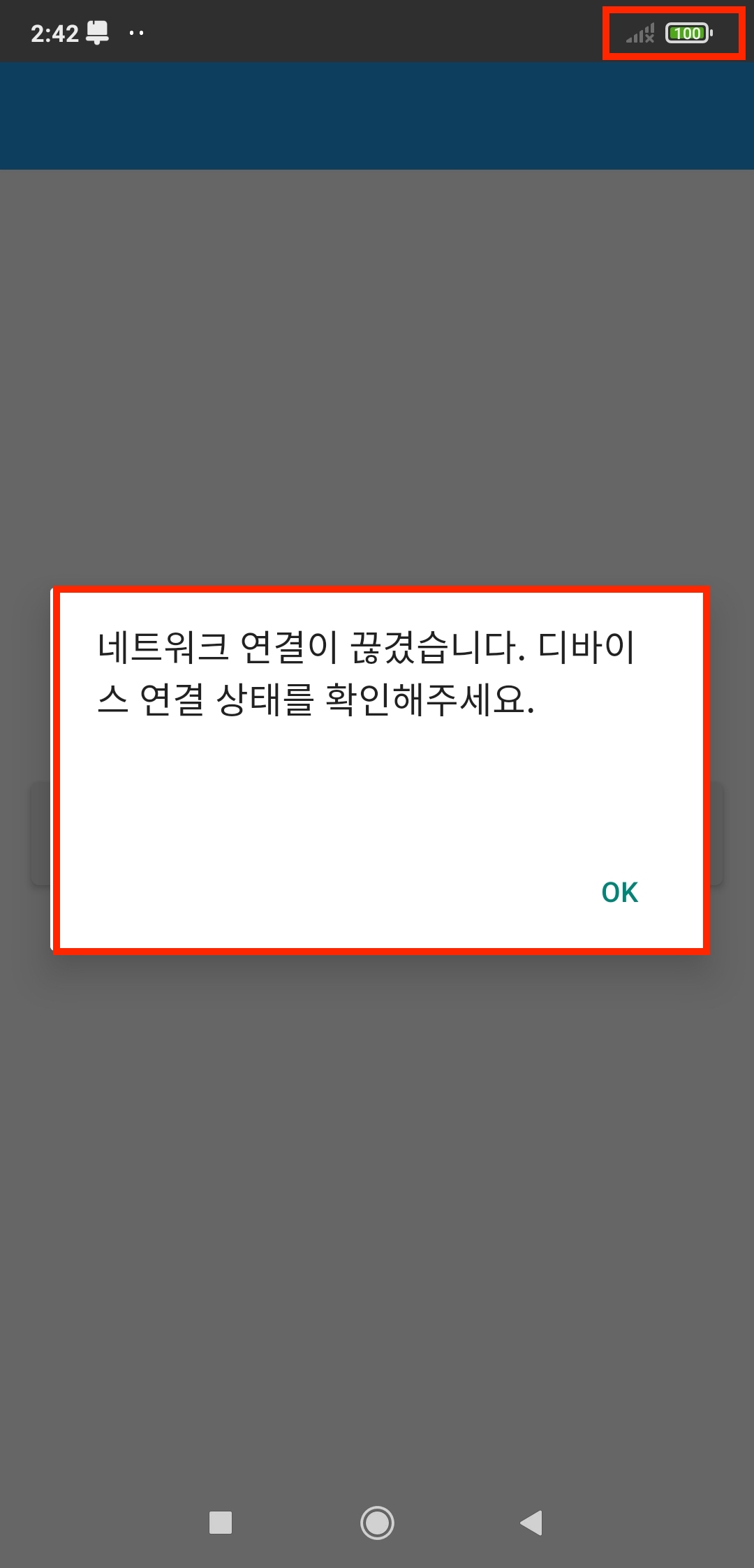 Alert.alert("네트워크 연결이 끊겼습니다. 디바이스 연결 상태를 확인해주세요.");