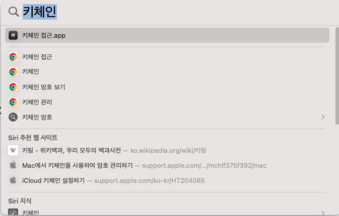 1. Mac Spotlight에서 키체인 접근을 검색합니다.