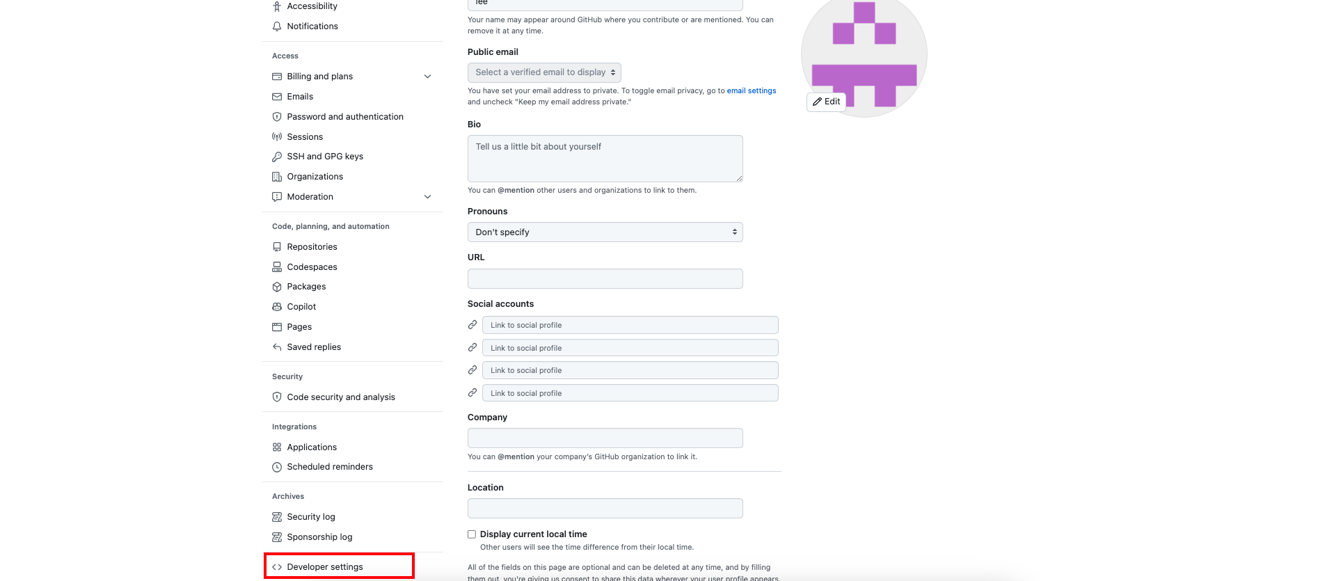 💡 Github 홈페이지 - Settings - Developer settings 탭을 선택합니다.