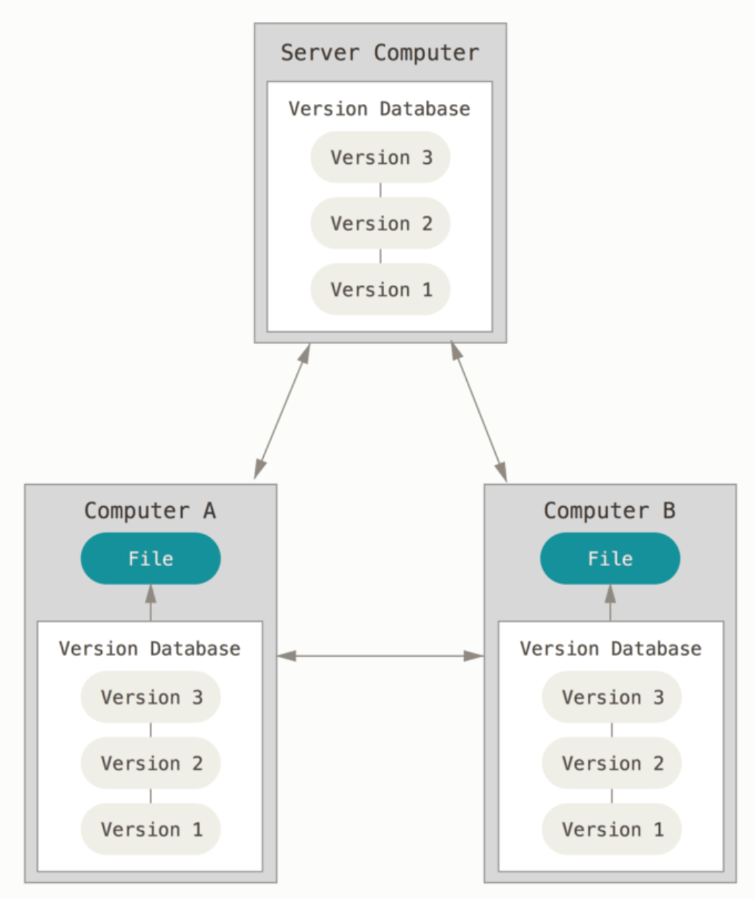 - Computer A, B는 각각 로컬에서 개발을 진행한 뒤 원격 저장소에 이를 올린다. 이를 통해서 여러 명의 사용자들 간에 작업한 내용(파일)들에 대해서 서로 공유를 한다.