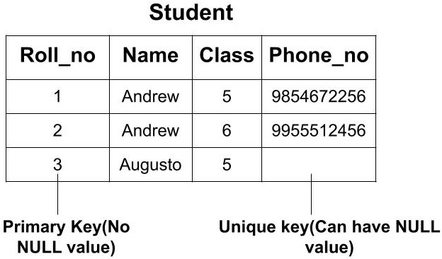 - 유니크 키는 빈값 또는 NULL 값을 허용하는 데이터베이스도 있지만 NOT NULL 제약 조건을 걸어두는 것을 권장합니다.