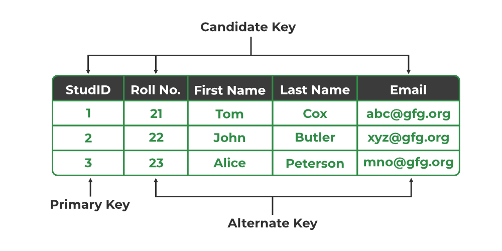 | 대체 키(Alternate Key) | 기본 키 대신 사용할 수 있는 다른 유일한 식별자 |