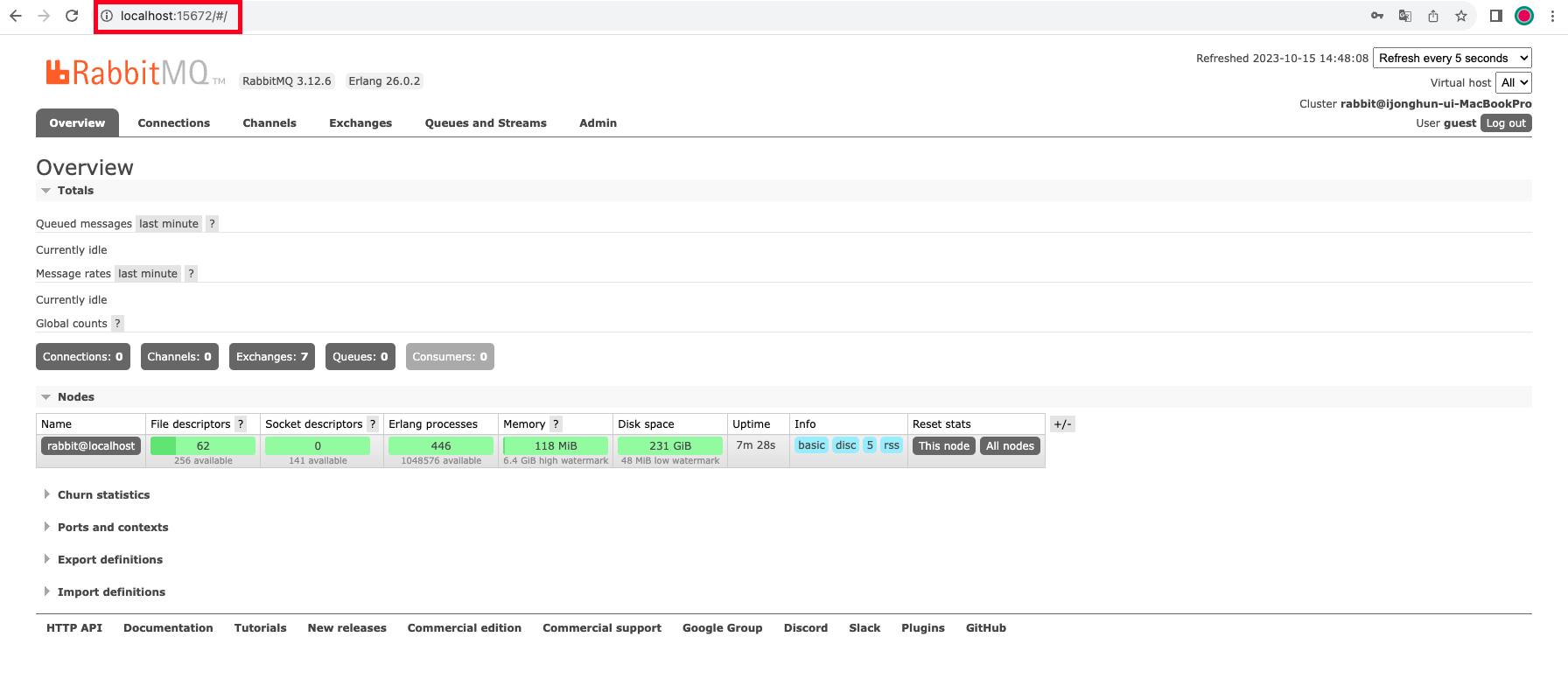 💡 로컬 RabbitMQ 경로는 http://localhost:15672/ 입니다.