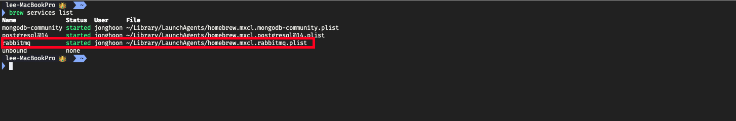 💡 RabbitMQ 서비스가 실행이 되어야 수행이 가능하기에 실행되는지 확인해봅니다.
