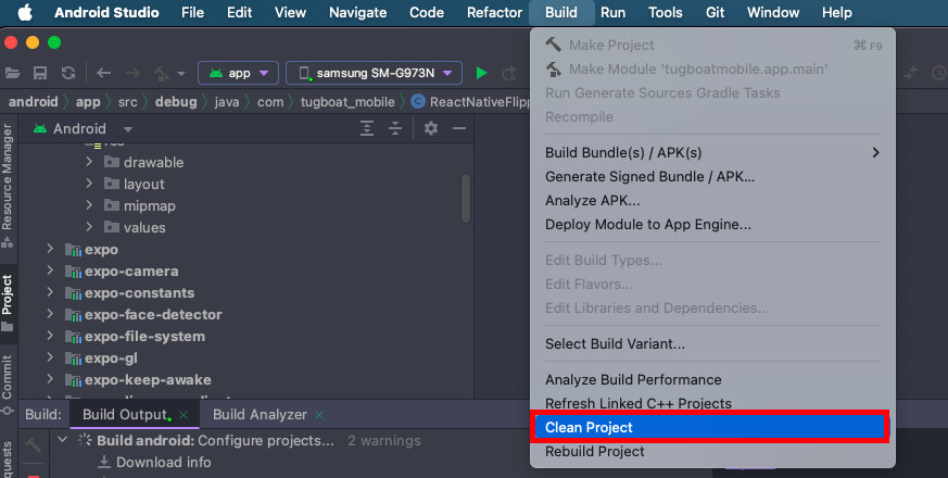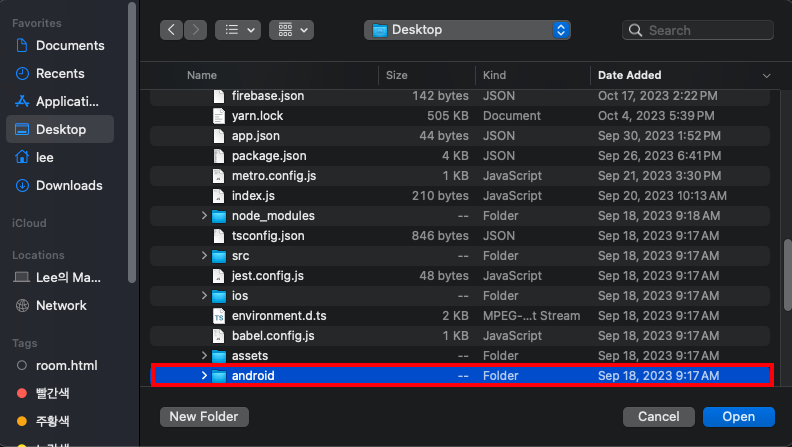 3. Android Studio에서 구성한 react-native 프로젝트 중 ‘android’ 폴더를 엽니다.