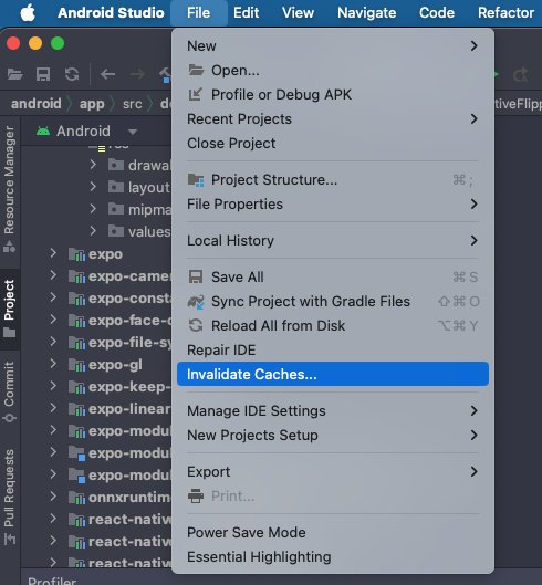 💡 해결방법 :Clean Project, Rebuild Project, Invalidate Caches..를 수행합니다.를 수행합니다.