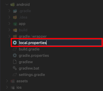 💡 android 폴더 바로 아래에 local.properties 파일을 생성하여 아래 코드와 같이 구성합니다.