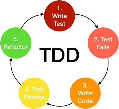 - 테스트 작성(Write Test) - 실패하는 테스트 실행 (Test Fails) - 코드 작성(Write Code) - 테스트 통과(Test Passes) - 리팩토링(Refactor)과 같은 반복 과정으로 수행이 됩니다.