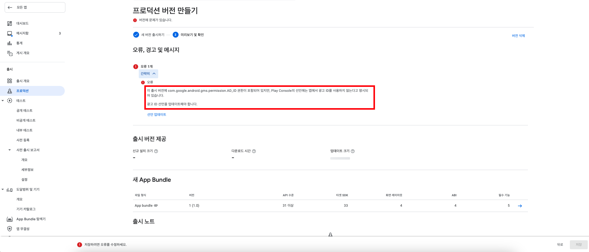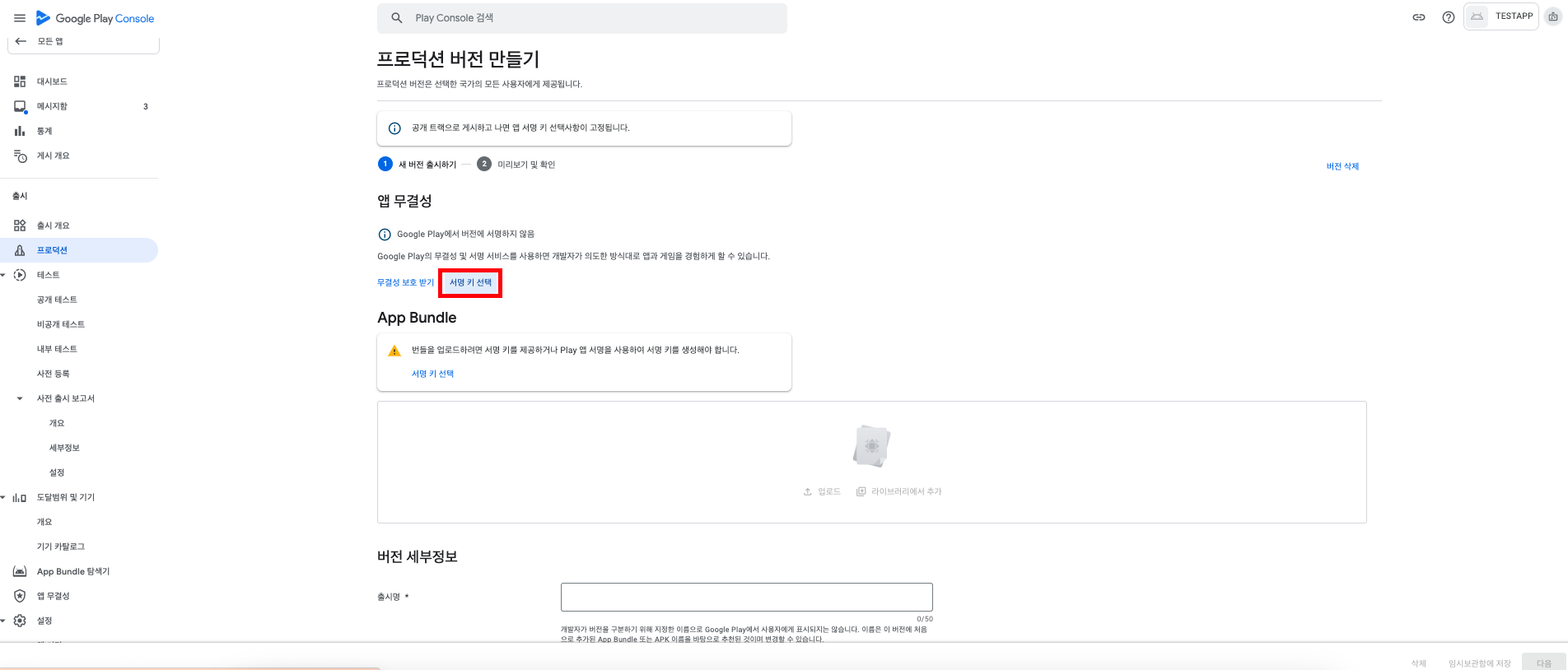 💡 [참고] 해당 파일을 업로드하고 "출시 모드로 APK 또는 Android App Bundle에 서명해야 합니다."와 같은 오류가 발생하는 경우 아래의 글을 참고하시면 이를 해결하실 수 있습니다.