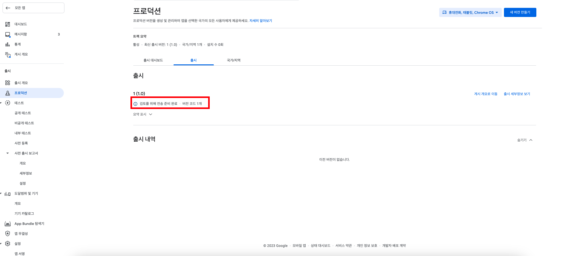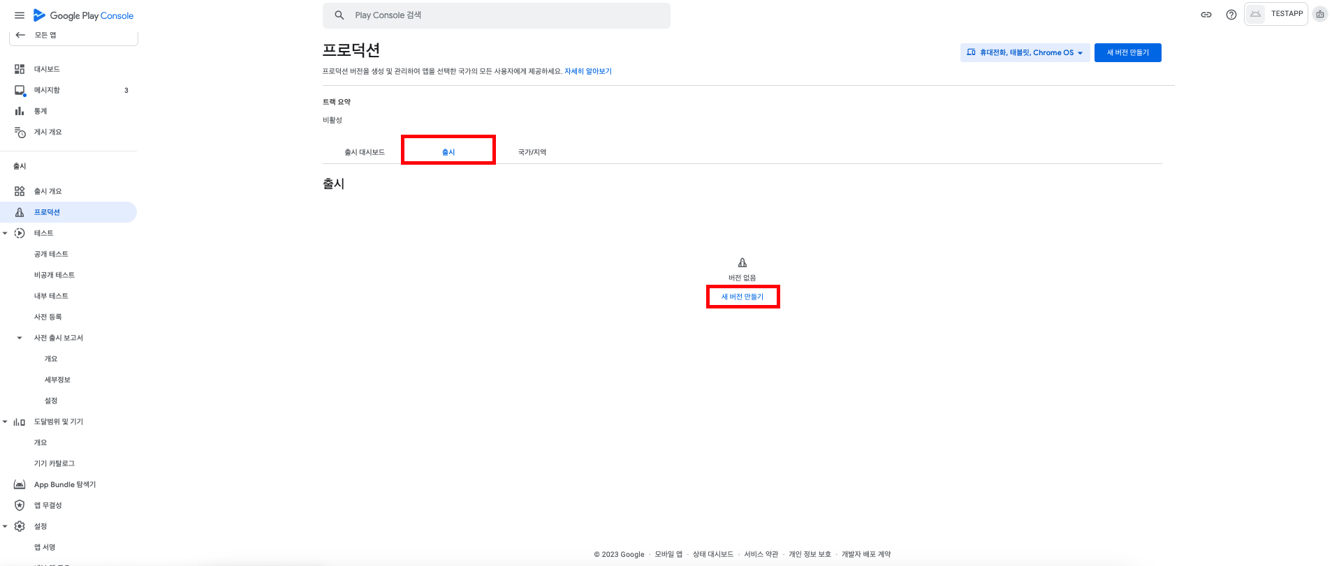 💡 프로덕션 - 출시 - ‘새 버전 만들기’를 누릅니다.