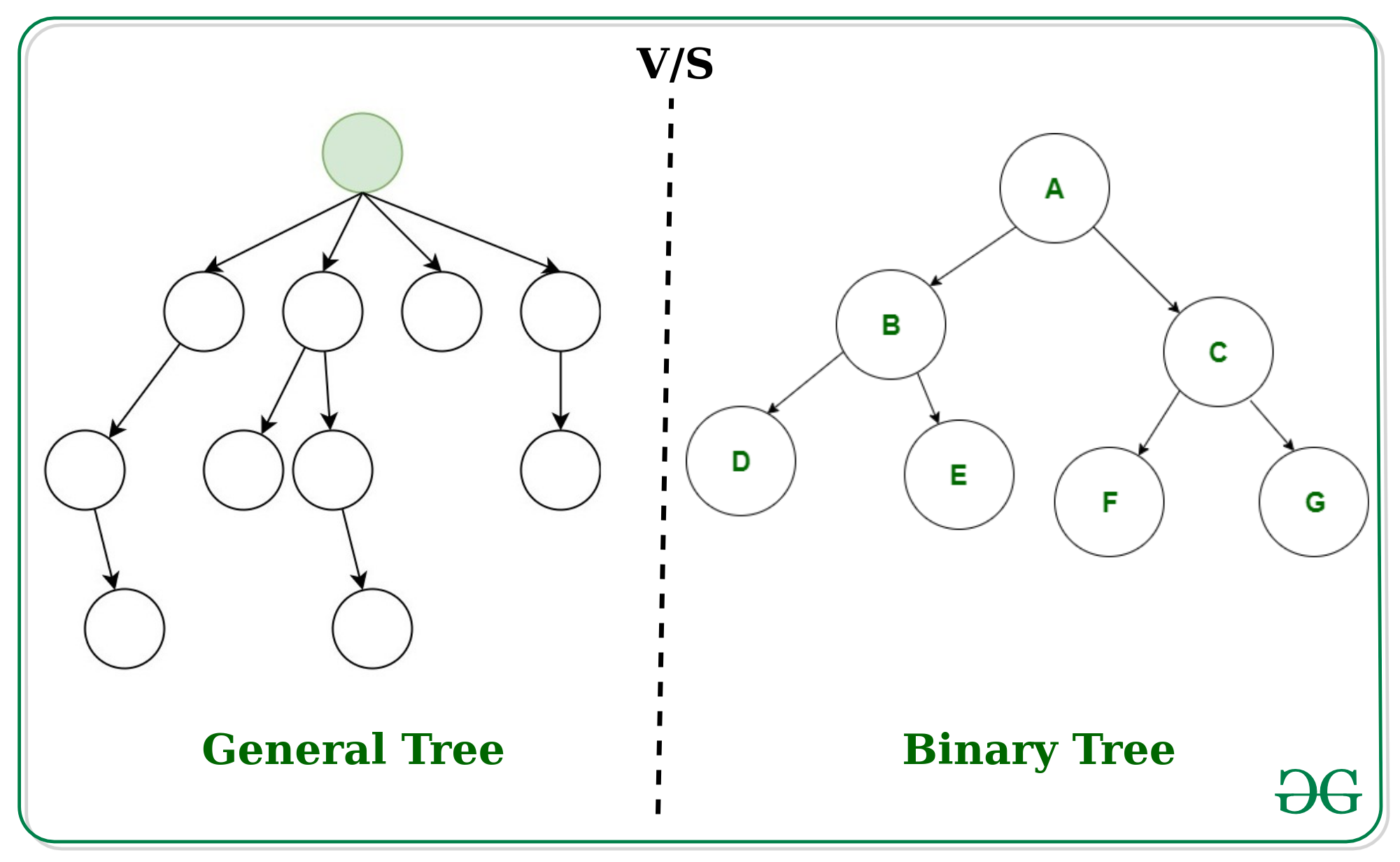 - 데이터는 노드(Node)라는 구성요소로 구성되며, 하나의 루트 노드에서 시작하여 여러 개의 자식 노드로 분기되는 구조를 가지고 있습니다. - 일반트리의 경우 자식 노드를 0개 혹은 다수의 하위 노드를 가질 수 있습니다. 그러나 이진트리의 경우 자식 노드를 최대 2개까지만 가질 수 있다는 차이점이 있습니다.