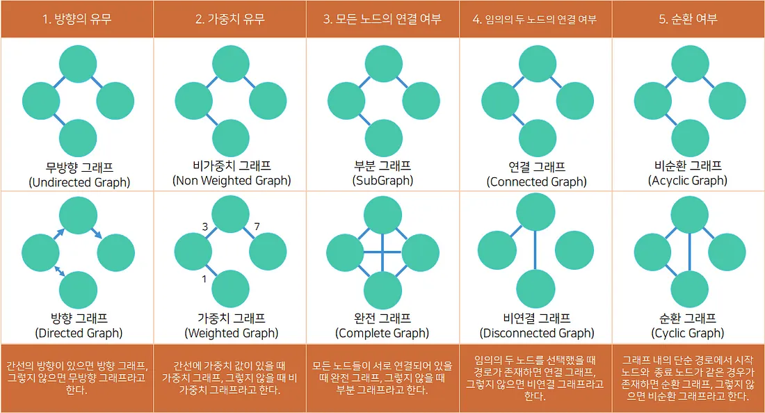 - 그래프는 방향성이 있는 경우와 없는 경우로 나뉩니다. - 방향성이 있는 그래프에서는 간선에 방향이 있어서 한 정점에서 다른 정점으로만 이동할 수 있습니다. - 방향성이 없는 그래프에서는 간선에 방향이 없어서 양방향으로 이동할 수 있습니다.