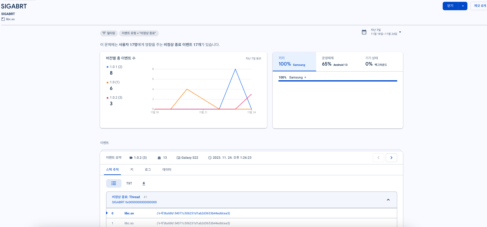 💡 [참고] Google Firebase Crashlytics