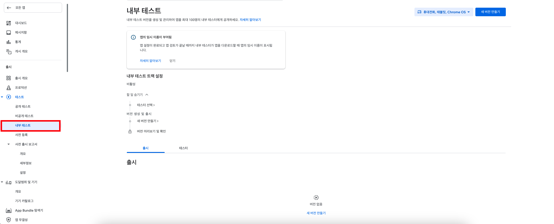 💡[참고] 내부 테스트 이후 종료 방법은 아래의 글을 참고하시면 도움이 됩니다.