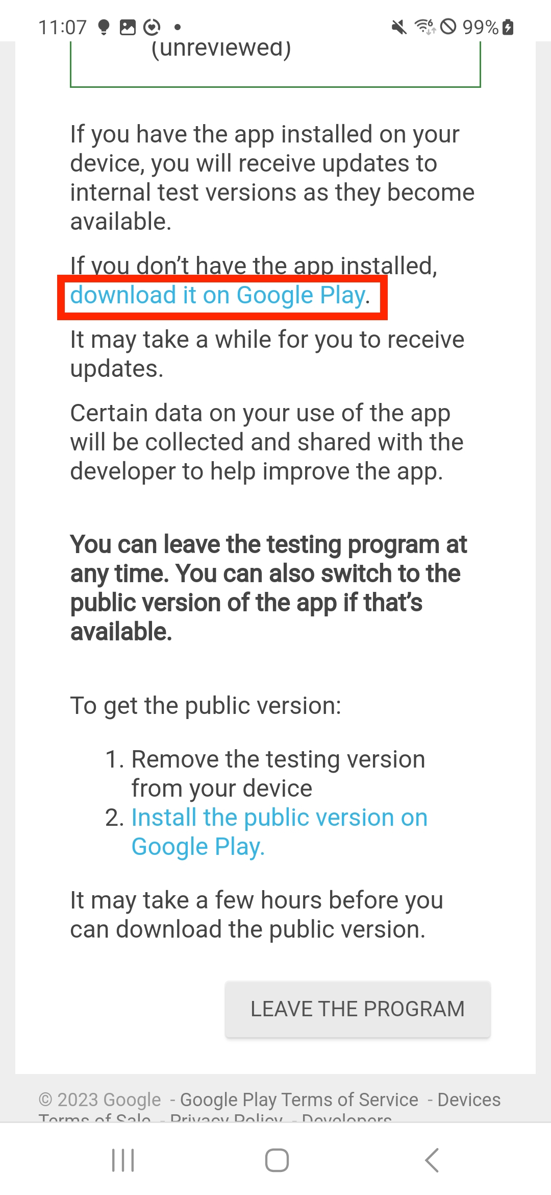 3. ‘download it on Google Play’ 버튼을 누릅니다.