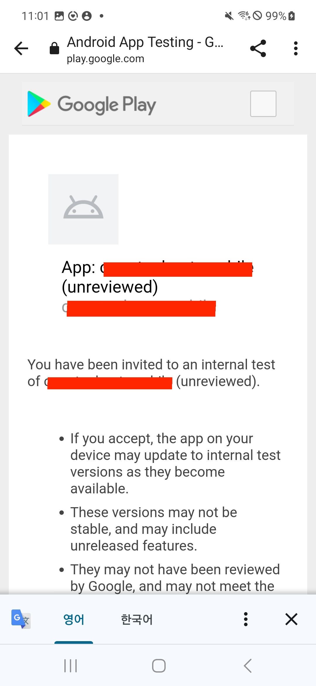 5) 내부 테스트 구성하기 : 앱 다운로드