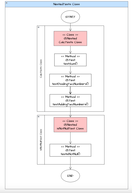 - NestedTests 클래스 안에 CalcTests와 IsNotNullTest 클래스가 존재하는데, 각각 모두 수행이 됨을 확인하였습니다.