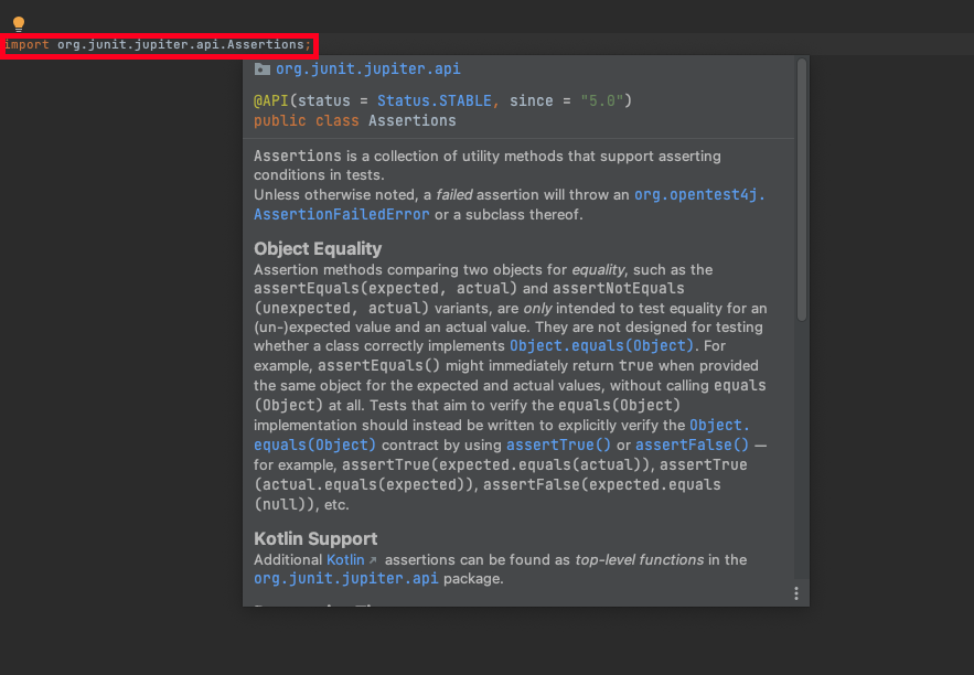 해당 글에서는 JUnit5 버전을 기준으로 API Document에 대해 확인합니다.