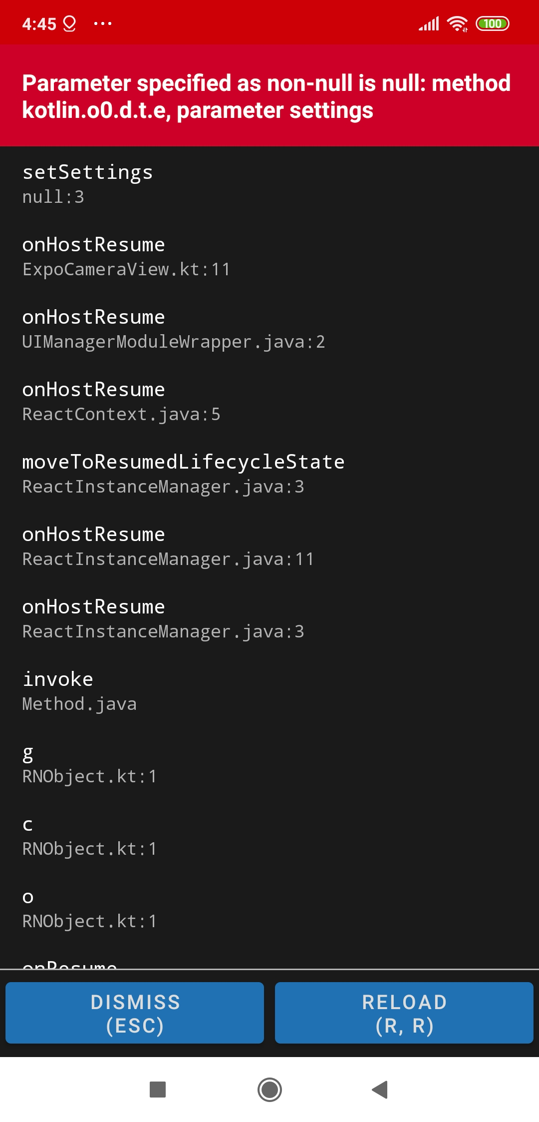 💡 프로젝트를 진행하는 도중에 안드로이드 디바이스에서 홈 버튼을 눌렀다가 다시 앱으로 돌아오는 경우 아래와 같은 문제점이 발생하였습니다. 해당 문제는 TensorCamera(expo-camera)를 사용하고 있는데, 앱을 벗어나는 경우에 'Unmount'를 수행하지 않고 나가고 다시 돌아온 경우에 발생하는 오류로 판단이 되었습니다.