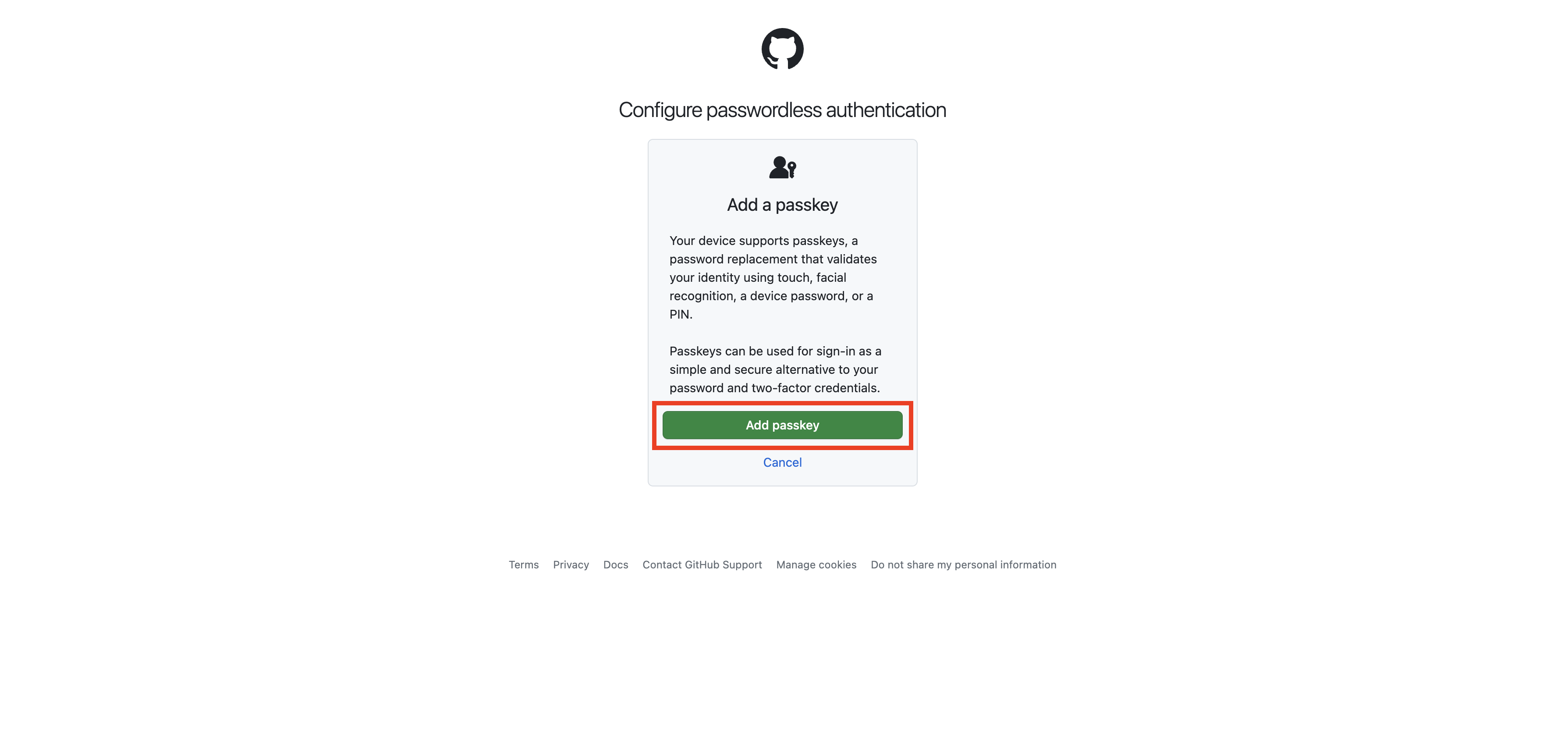 4. 인증을 마친 뒤 ‘Add passkey’ 버튼을 누릅니다.