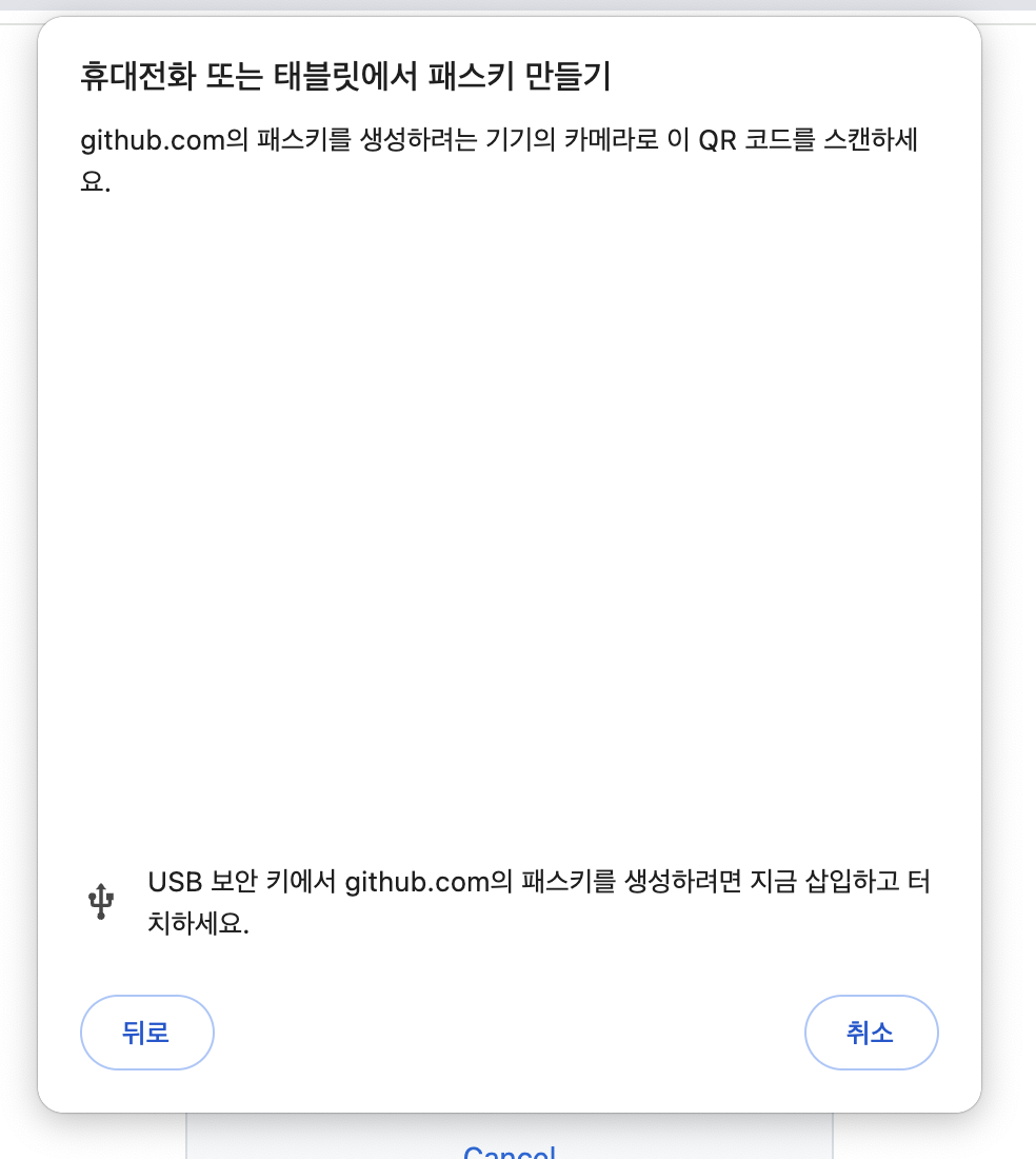 6. 아래와 같이 QR코드가 나오고 내 핸드폰에 최초 패스키를 등록합니다.