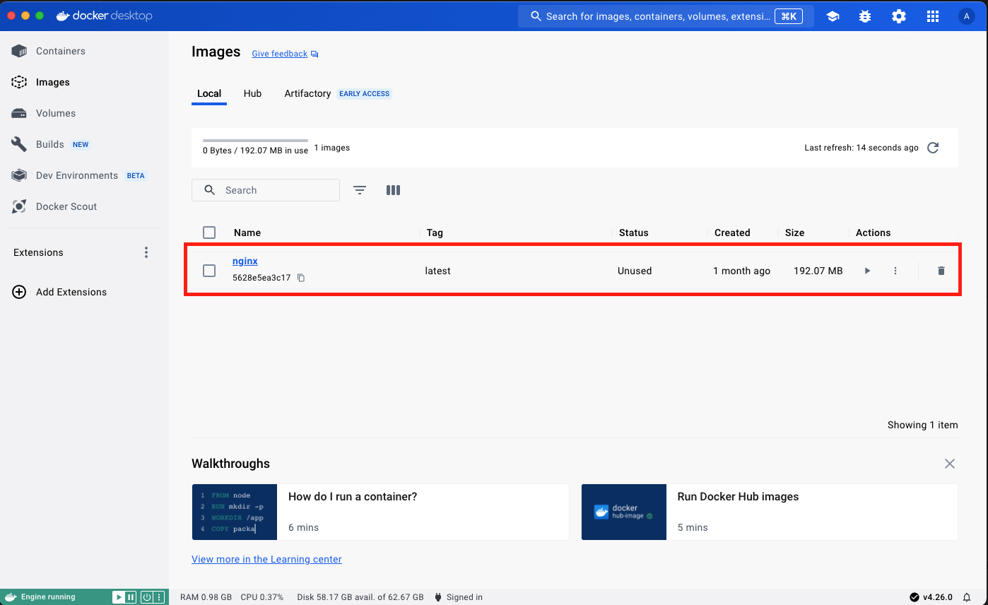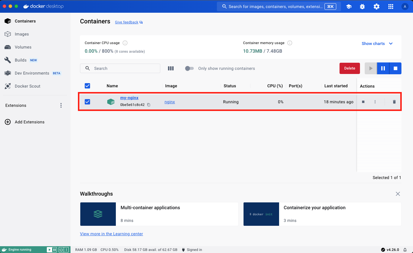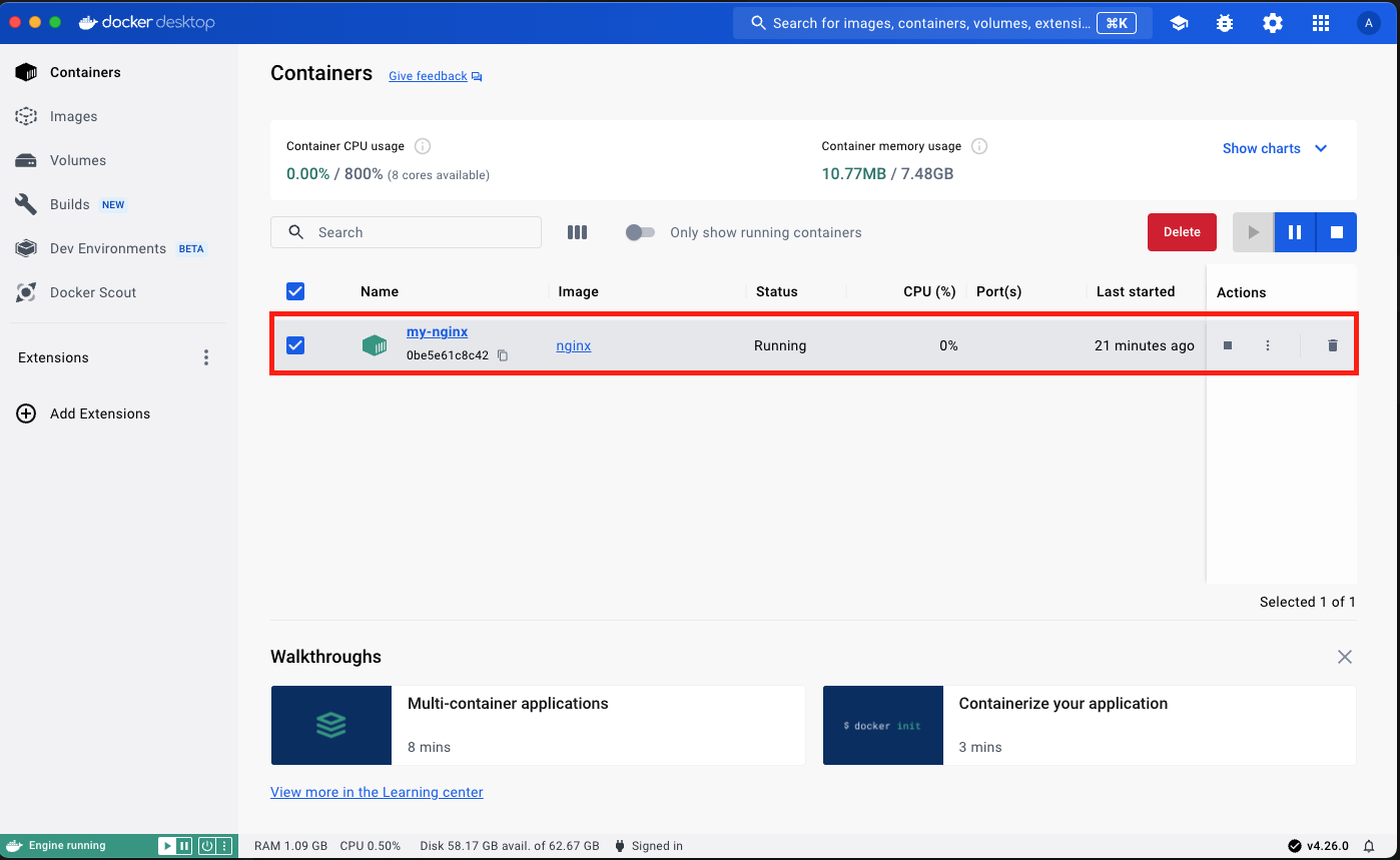 💡 Docker Image를 기반으로 컨테이너를 생성되었습니다.