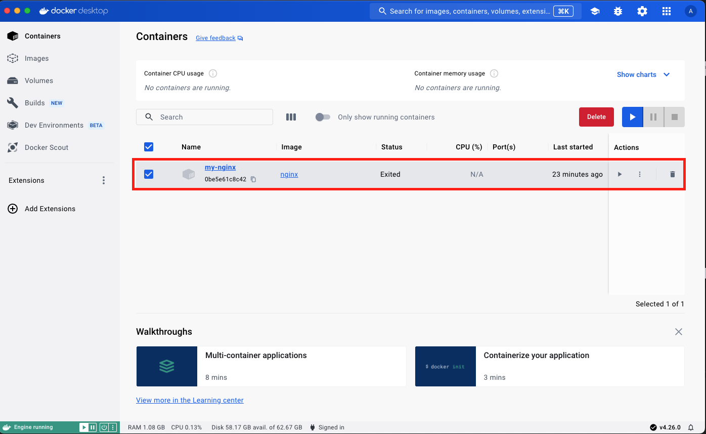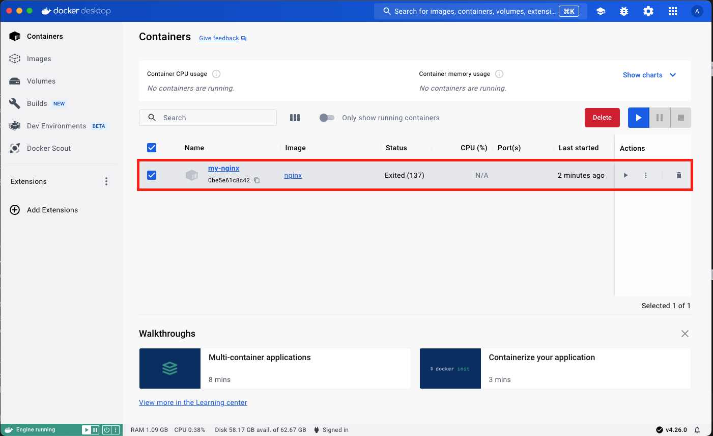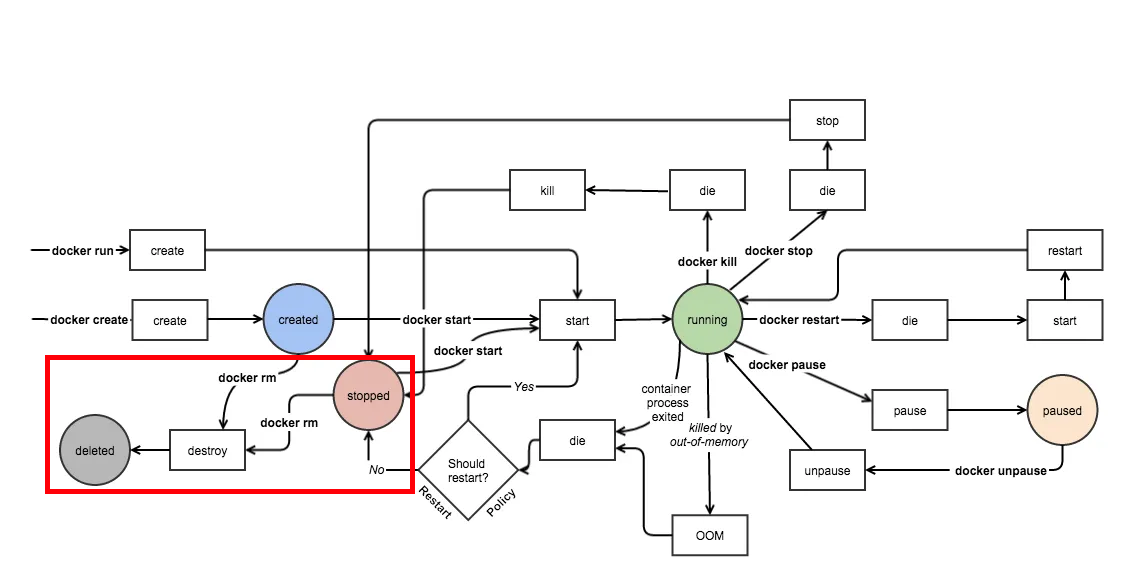 - 중지된 컨테이너를 제거합니다. - 제거된 컨테이너는 더 이상 사용할 수 없습니다.