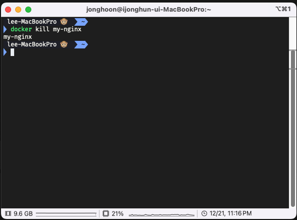 💡 아래의 명령어를 통해 컨테이너를 종료시킵니다.