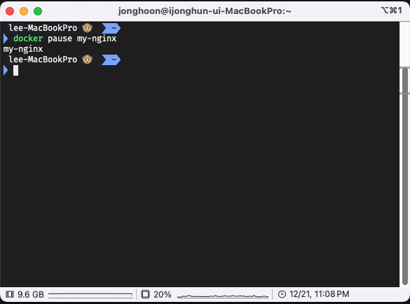 💡 아래의 명령어를 통해 컨테이너를 일시정지 합니다.