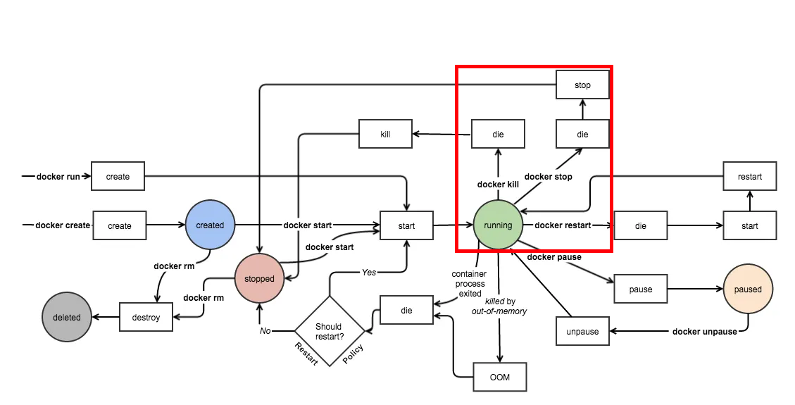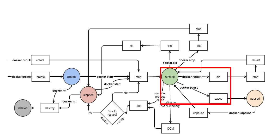 - 컨테이너를 일시적으로 정지시킵니다. - 컨테이너는 일시 정지된 상태에서도 메모리 상태가 유지됩니다.