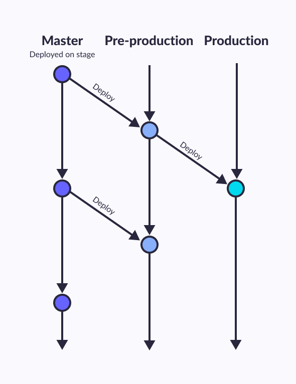 - 작은 규모의 프로젝트나 소규모 개발팀에서 주로 사용되며 릴리즈 주기가 짧은 프로젝트에 적합한 전략입니다.