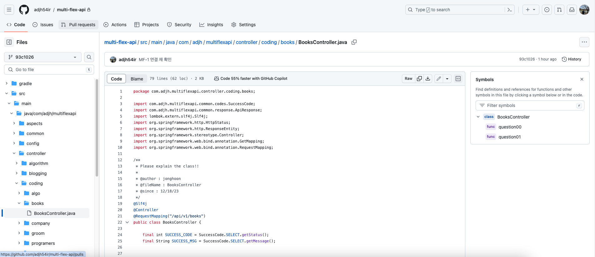 2. 변경 파일을 선택하면 Github 내에서 파일에 대한 소스코드를 확인이 가능합니다.