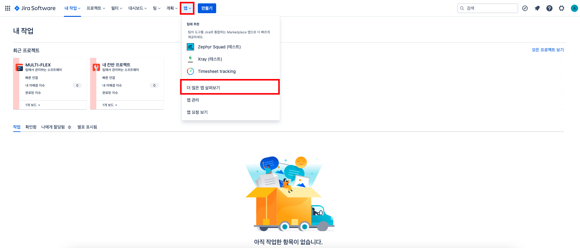 1. JIRA에서 앱 - ‘더 많은 앱 살펴보기’ 탭을 선택합니다.