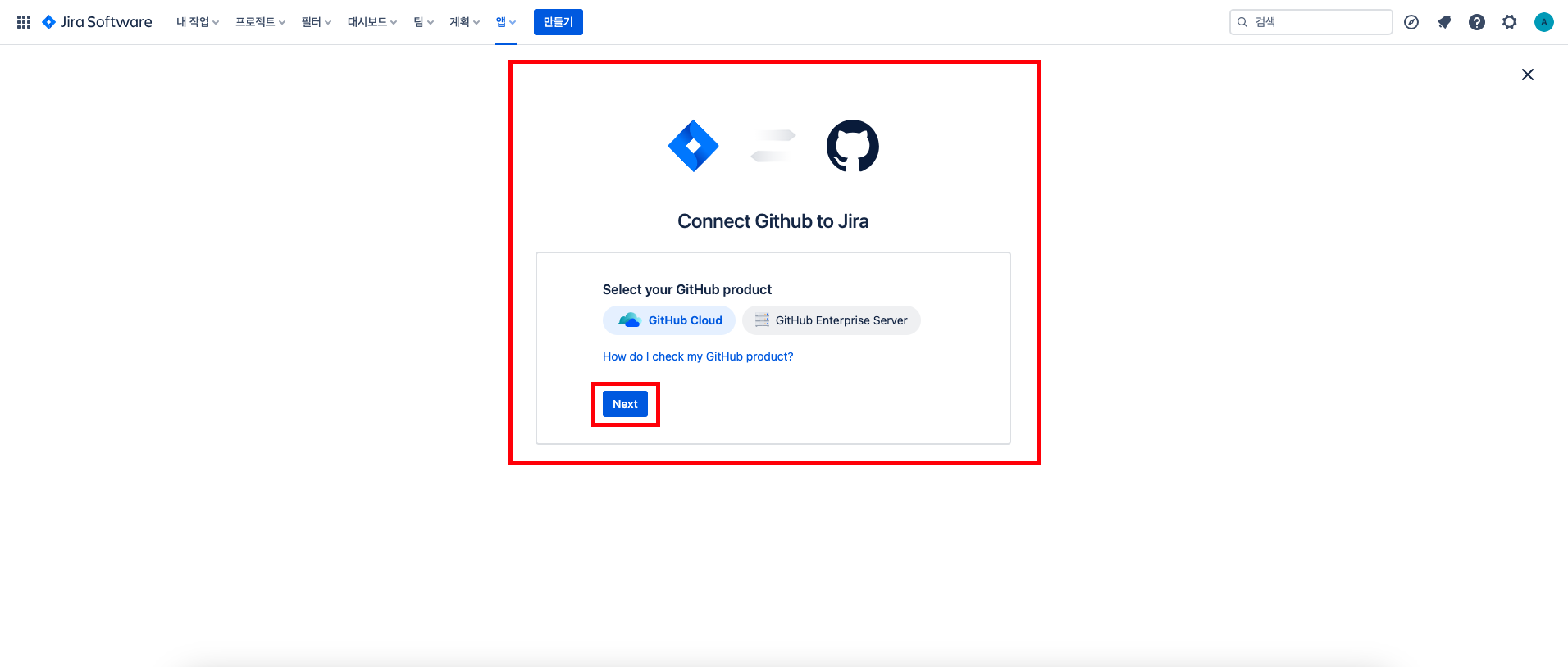 7. ‘Github Cloud’ 버튼을 누르고 ‘Next’ 버튼을 누릅니다.