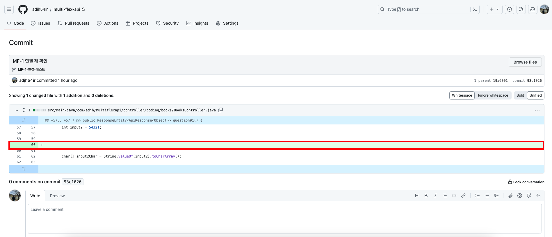 6. 실제 커밋을 누르고 들어가면 아래와 같이 커밋 사항을 확인할 수 있습니다.